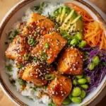 The alluring aroma of searing salmon fills the air, instantly igniting an insatiable hunger. As the delicate fillet sizzles in a hot skillet, it dances on the edge of perfection, coaxing out rich, buttery flavors that will make your taste buds sing. Imagine a crispy skin that crackles with each forkful and tender, flaky flesh that melts like butter in your mouth. Paired with vibrant, buttery slices of avocado, crunchy cucumber ribbons, and the cheery pops of edamame, this Crispy Salmon and Rice Bowl transforms any meal into a joyous celebration for the senses.