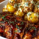 A delightful dish of juicy honey BBQ chicken paired with creamy garlic Parmesan potatoes, perfect for gatherings and cozy dinners.