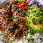 Make-Ahead Tips: Prep the components in advance. Marinate the chicken overnight, cook the rice ahead of time, and prepare the avocado mix shortly before serving. Store everything in separate airtight containers in the refrigerator to maintain freshness.