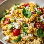 Imagine the sweet aroma of summer wafting through the air as you gather around a colorful picnic table, your friends laughing and the sun casting a warm glow on everything it touches. You reach for a bowl of Juicy Street Corn Pasta Salad, a vibrant dish that captures the essence of sunny days and carefree moments. Each bite bursts with bright flavors, a delightful medley of buttery corn, juicy tomatoes, and creamy avocado, all mingling beautifully to create a refreshing experience that dances on your palate. The crunch of crisp red onions adds a symphony of texture, while the feta lends a salty, tangy note that ties everything together. This salad doesn’t just serve as a side; it feels like an invitation to savor life, one mouthwatering forkful at a time.