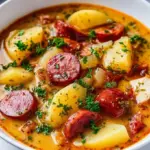 A comforting and hearty Kielbasa Potato Soup with smoky sausage, creamy potatoes, and aromatic herbs.