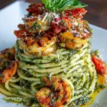 This dish embodies pure comfort without sacrificing elegance. The marriage of creamy pesto—rich with Parmesan and nutty pine nuts—and perfectly cooked shrimp creates a harmonious blend that feels both indulgent and fresh. Suitable for any occasion, it makes weeknight dinners feel special and charming enough for entertaining guests. You won’t just enjoy eating this dish; you’ll relish the act of preparing it, engaging all your senses and evoking memories of sun-drenched summer days. It stands out not only for its flavor but for its aesthetic appeal, making it a memorable addition to any recipe collection.
