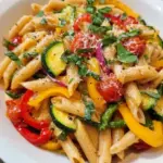 A vibrant and delicious vegetarian pasta dish bursting with seasonal vegetables and flavors.